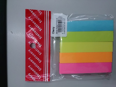 CHERRY STICK NOTE F103-5 15mmX75mm (5 IN 1)Moel: F103-5 Size: 15mmX75mm (5 IN 1) cyber color |