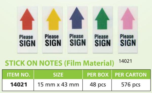 CBE STICK ON NOTES 14019Film Material Word : Please SIGN HERE Size: 5mm x 43mm |