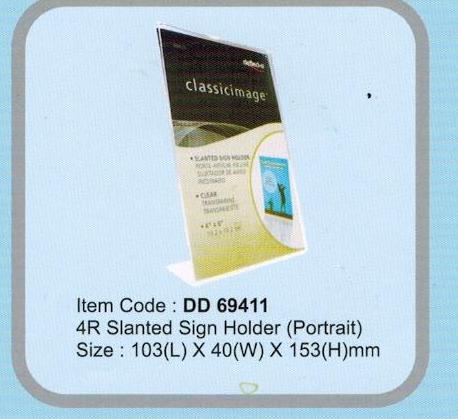 DEFLECT-O 4R SIGN HOLDER DD69411Code: DD69411 - L SHAPE SIGN Size: 103(L) X 40 (W) X 153(H) mm 4R Slanted Sign Holder (Postrait) |