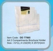 A4 2 COMPARTMENT BROCHURE HOLDER DD77865Code: DD77865 Wall Mount Brochure Holder A4 1 Compartment Brochure Holder Size: 121(L) X 232(W) X257(H)mm |