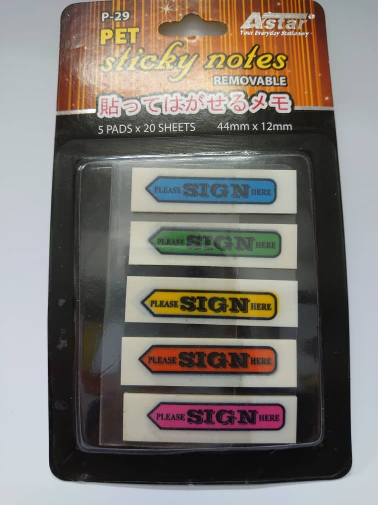 ASTAR FILM STICKY NOTE P29 "PLEASE SIGN HERE"Size: 44mmx12mm (20'sX5pad) |